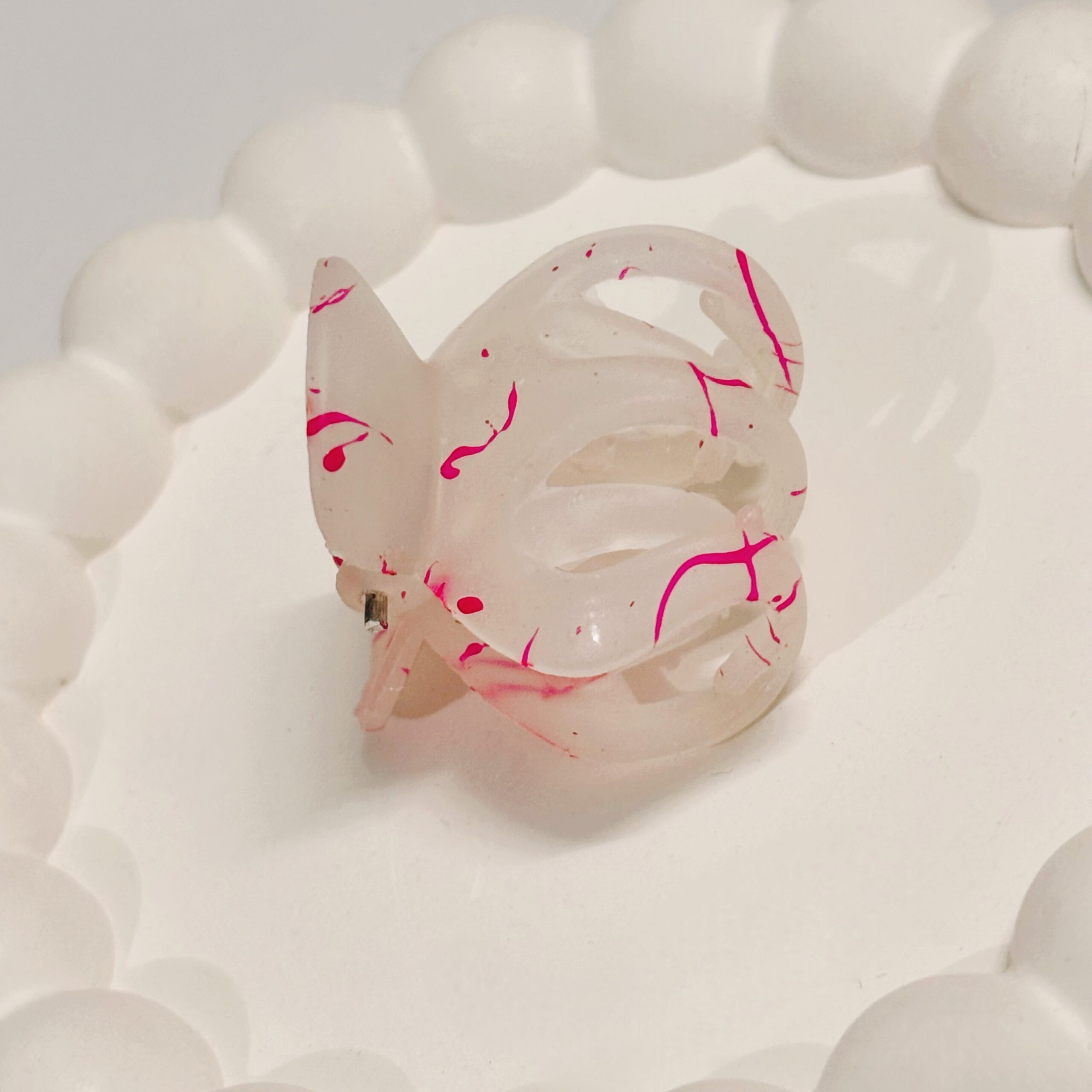Style your hair effortlessly with this clear pink Marble Hair Clutcher. Featuring a translucent ivory base with elegant pink marble swirl detailing, this clutcher adds a chic and modern touch to any hairstyle. Designed with a strong grip and lightweight feel, it comfortably secures your hair for all-day wear—perfect for buns, twists, and half-up styles.