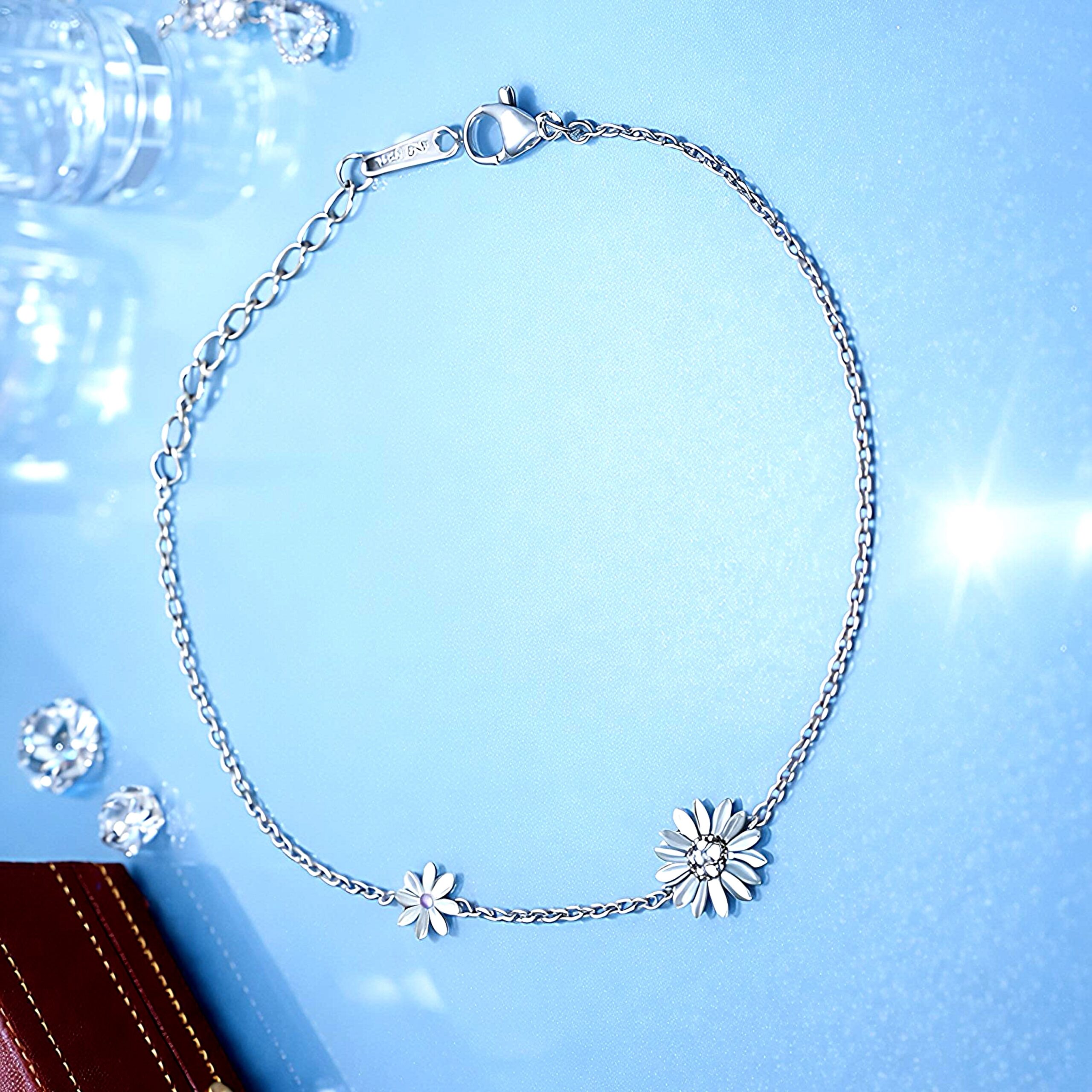 Design: Features a dual-flower motif with a shimmering cubic zirconia center in the larger daisy for a touch of brilliance.