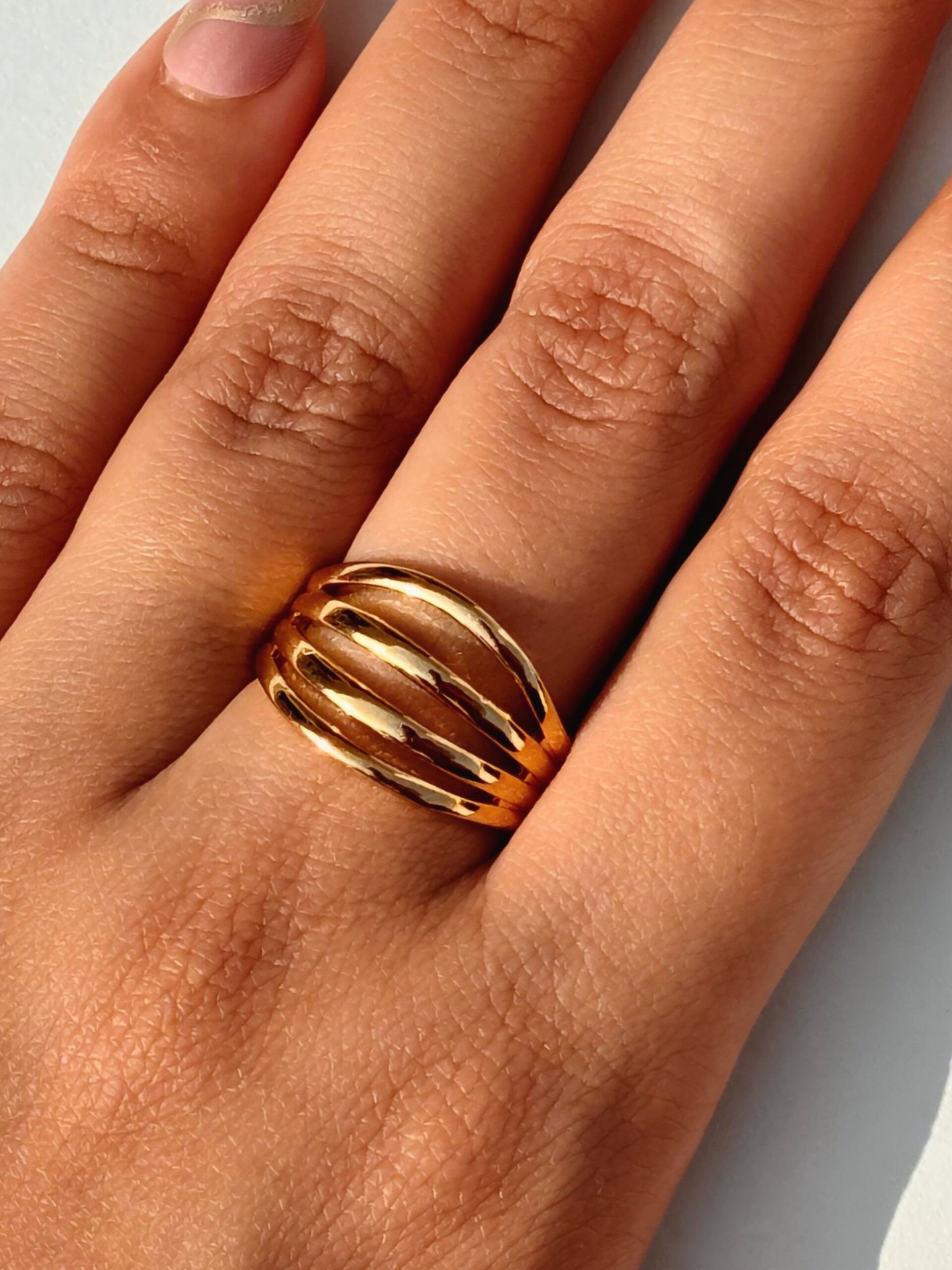 Design: Contemporary multi-layer band design inspired by the elegance of orbiting forms for a bold yet minimal look.