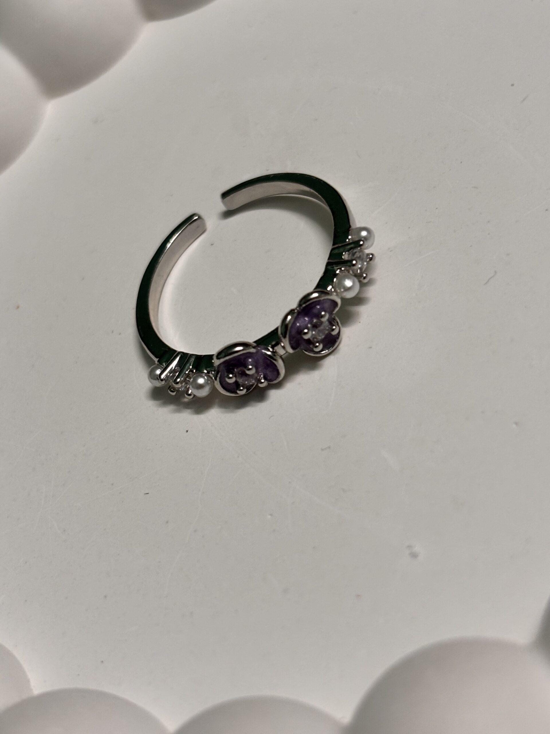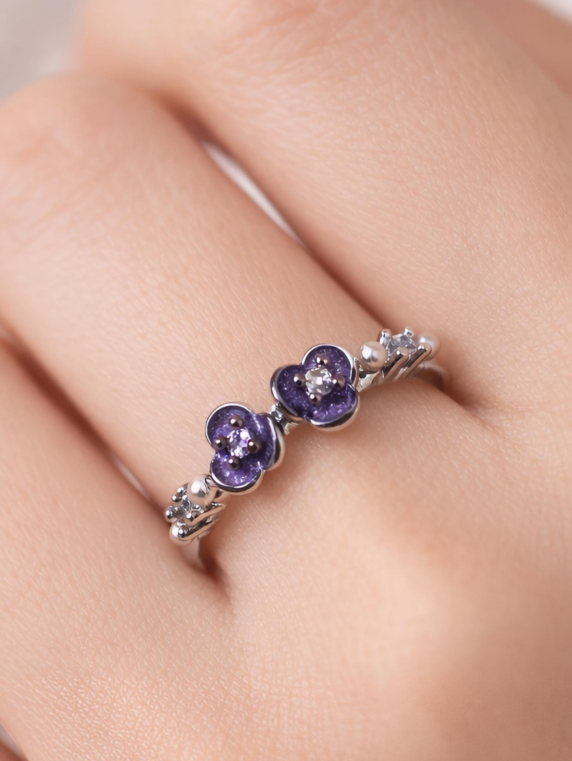 Design: Features charming lavender-hued floral stones accented with delicate pearl details, creating a romantic and feminine look.