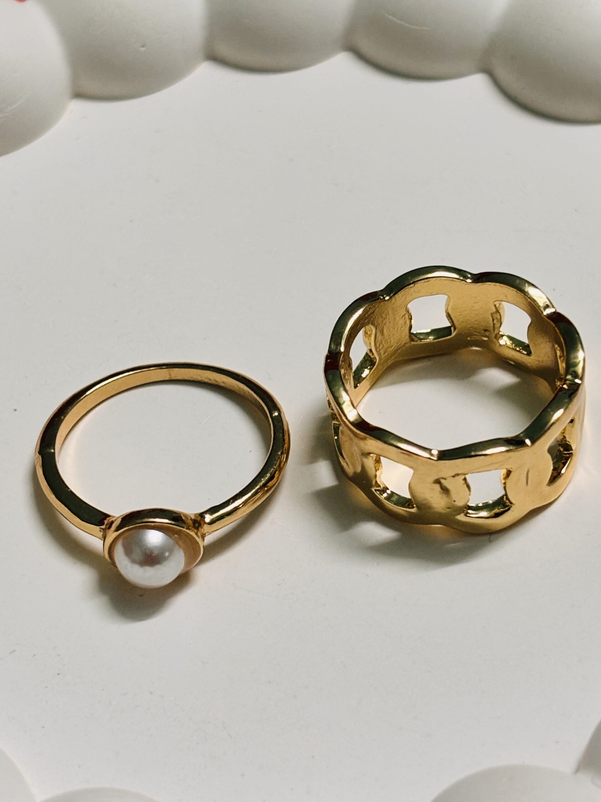 Gold Plated Fashion Ring Set β€” Pearl Crown Duo