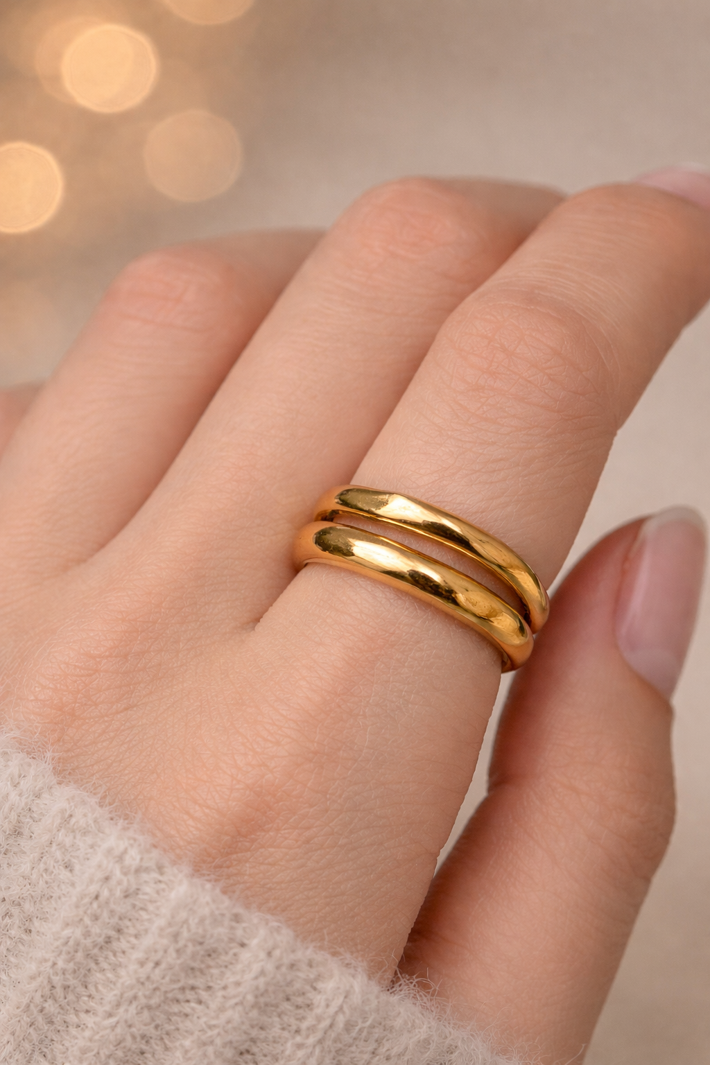 Design: Elegant dual-band curved silhouette inspired by flowing lines for a contemporary and refined look.